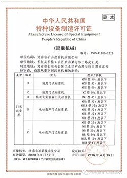 电动葫芦许可证