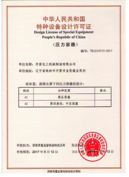 特种设备设计许可证